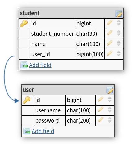 Mỗi sinh viên (Student) có 1 tài khoản (User), mỗi tài khoản chỉ có tối đa một sinh viên tương ứng.