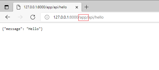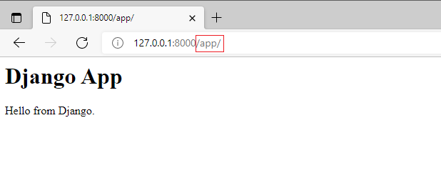So với ví dụ trước, các link truy nhập ứng dụng có thêm phần /app phía sau địa chỉ gốc của server, điều này là do trong phần urlpatterns của project đã có khai báo: