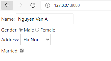 Truy nhập ứng dụng tại địa chỉ http://127.0.0.1:8080