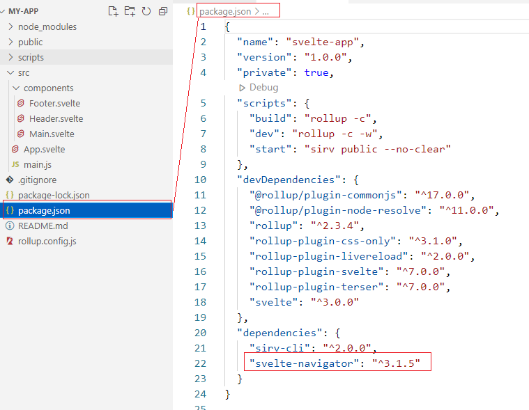 Để sử dụng router với Svelte, cần cài đặt thêm thư viện svelte-navigator: mở cửa sổ command trong thư mục gốc của project và gõ lệnh: