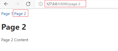 Khi click vào các link trên navigator thì trang tương ứng sẽ được hiển thị. Ngoài ra, trên thanh địa chỉ trình duyệt, địa chỉ trang cũng thay đổi theo.